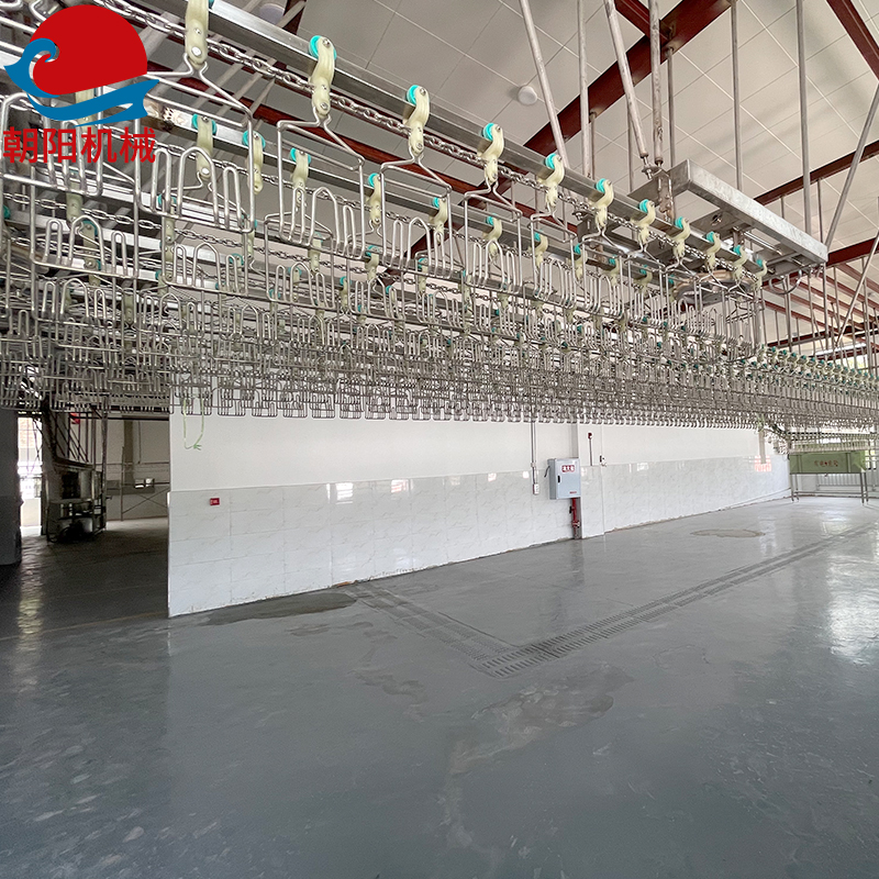 3)預(yù)冷好的胴體要通過(guò)瀝干機(jī)或高架輸送線將體內(nèi)的水瀝干。