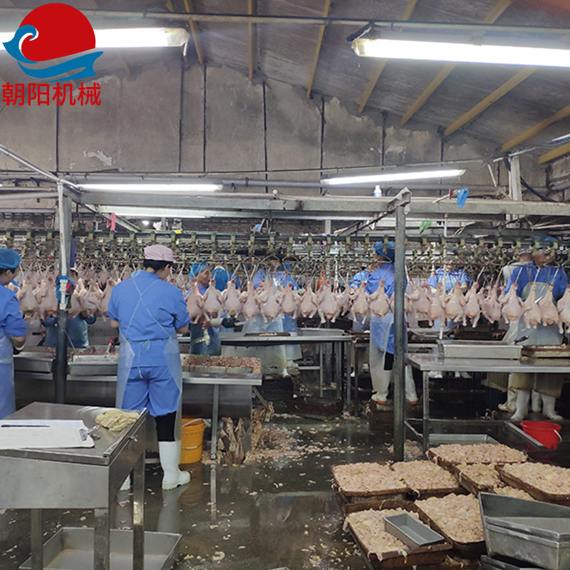 注:產(chǎn)品不同,工藝流程有差距。諸城市朝陽機(jī)械有限公司是一家集家禽屠宰設(shè)備、家禽屠宰流水線研發(fā)生產(chǎn)和設(shè)計(jì)銷售于一體的生產(chǎn)制造商。公司具有較完善的設(shè)計(jì)、研發(fā)、檢測(cè)和售后體系,并且具有雄厚的技術(shù)力量,進(jìn)步的工藝設(shè)計(jì)水平、屠宰設(shè)備和安裝水平,是國(guó)內(nèi)家禽屠宰機(jī)械行業(yè)代表性企業(yè)。公司長(zhǎng)期與國(guó)內(nèi)外屠宰加工企業(yè)合作,走引進(jìn)——消化——?jiǎng)?chuàng)新和自主研發(fā)相結(jié)合的道路,在國(guó)內(nèi)外同類產(chǎn)品的基礎(chǔ)上,不斷更新和改造。公司主要設(shè)備有:A字型立式脫毛機(jī)、臥式脫毛機(jī)、強(qiáng)力噴淋機(jī)、松毛機(jī)、浸燙池、螺旋預(yù)冷機(jī)、禽籠清洗機(jī)、電暈機(jī)、兔扯皮機(jī)、兔割前爪/后爪機(jī)、剝胗機(jī)、自動(dòng)洗鉤機(jī)、螺旋燙爪機(jī)、雞爪脫皮機(jī)、分割輸送帶等屠宰用設(shè)備。其中,公司獨(dú)力發(fā)明生產(chǎn)設(shè)計(jì)的“電動(dòng)調(diào)節(jié)脫毛機(jī)”及“自動(dòng)控水控溫浸燙池”順利通過知識(shí)產(chǎn)權(quán)局的實(shí)質(zhì)性審查。公司所生產(chǎn)的設(shè)備性能達(dá)到國(guó)際同類產(chǎn)品水平,處于國(guó)內(nèi)超前地位,可與國(guó)外同類產(chǎn)品配套使用,設(shè)備遠(yuǎn)銷阿爾及利亞、澳大利亞等中東、非州等并建立了長(zhǎng)期穩(wěn)定的合作關(guān)系。